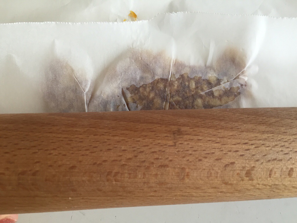 Place the sugar in a heavy based saucepan and heat carefully until the sugar melts, taking care to remove from the heat from time to time so that the sugar melts without burning. When the sugar is completely transparent and caramel coloured, stir in the walnuts. The mixture will start to firm up immediately. Tip the mixture onto a square sheet of baking paper, and cover with another sheet of paper. Using a rolling pin, roll the mixture out to about 2-3mm thick. Let the walnut brittle cool.
