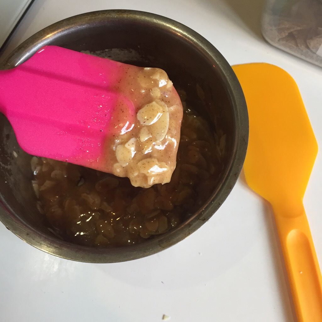 Punch the dough down and divide into 12. Form into balls, and place each in a cupcake case (if you’re making a large cake, you’ll need to make a flat Frisbee type shape, and use a spring-form pan to make it easy to get the cake out). Cover the muffin pan with the teatowel and let the dough balls rise until double in size. Spread the cool Almond Toffee Glaze over the dough balls.