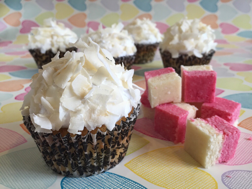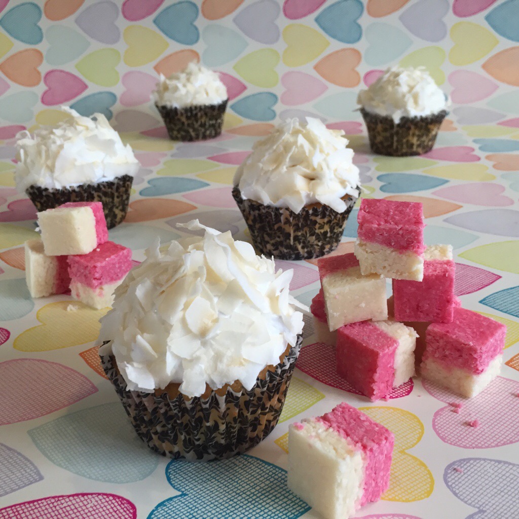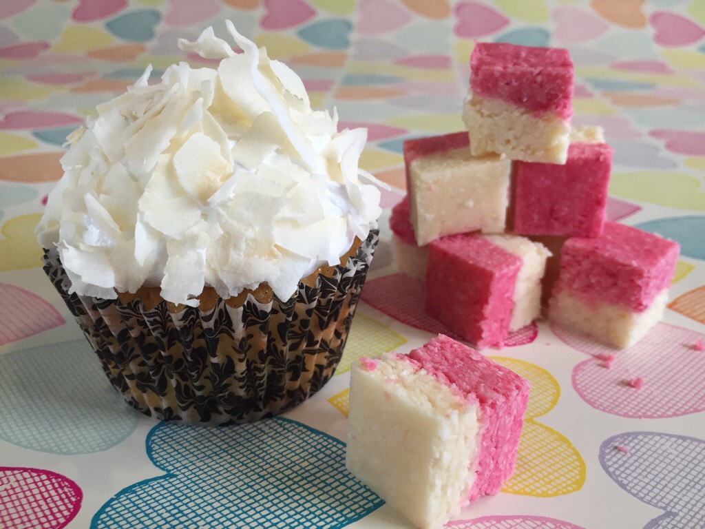 I have phases with coconut where I just can’t get enough. When the cravings come round, I usually make coconut ice, with its pretty pink and white layers and tropical flavour it’s always a great pick me up. Actually, just writing that is making me want some – and has made me realise I know just how to style these cupcakes!