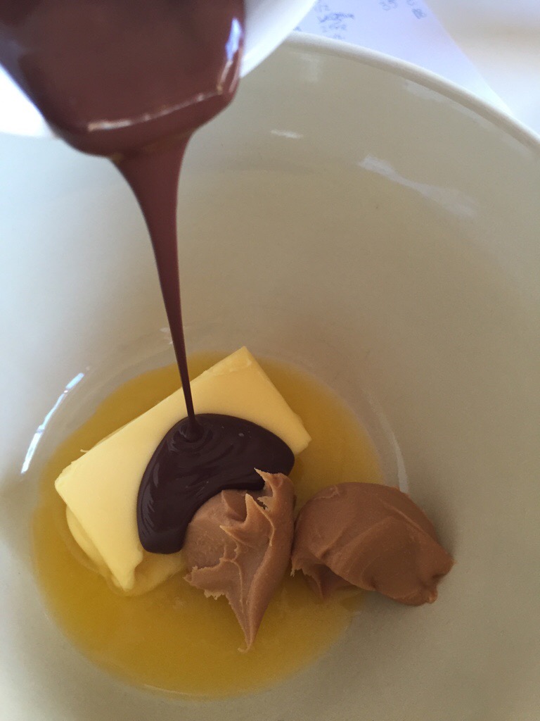 Beat the butter, melted chocolate and peanut butter in a bowl until smooth. Add the icing sugar, cocoa powder and salt and beat until light and creamy.
