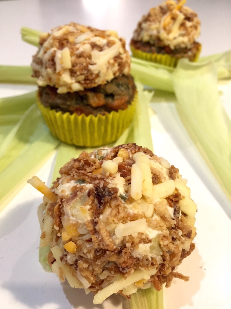 It’s the last Savoury Tuesday in May! Today we have something that I’ve been looking forward to making all month: Cornbread Cupcakes with a “Deep South” Cheeseball topping – think jalapeno chilies, ranch dressing, cream cheese, crisp fried onion, dill pickles, all rolled in marbled Colby jack cheese!
