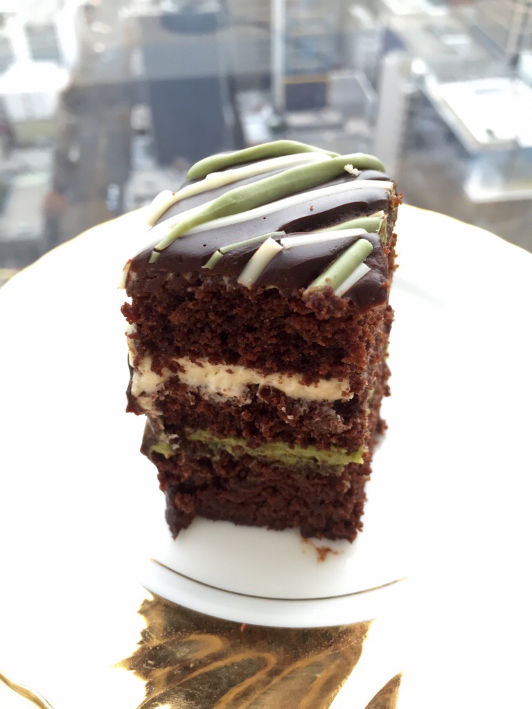 And crowning the top is smooth dark chocolate ganache, striped with plain and matcha flavoured white chocolate.