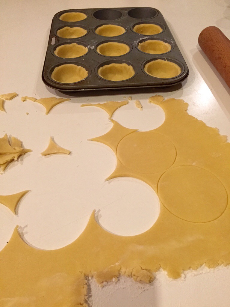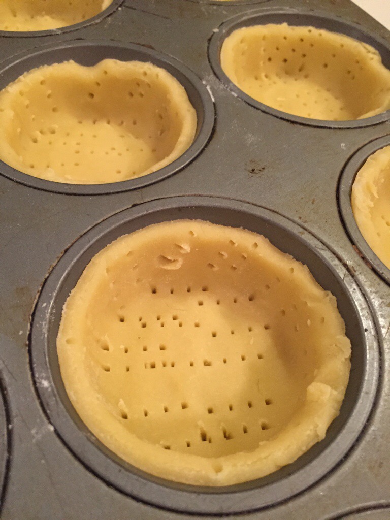 Bake the pastry for about 15 to 20 minutes at 180°C, or until the pastry is golden. If you find that the pastry is puffing up too much during the baking process, you can remove the half cooked pastry from the oven and press the puffed parts gently down with the back of a dessert spoon, then return to the oven until golden. Let the pastry cool. If making a large pie, leave the pastry case in the tin. If making mini pies, remove the cold pastry cases from the muffin tins and set on a baking sheet.