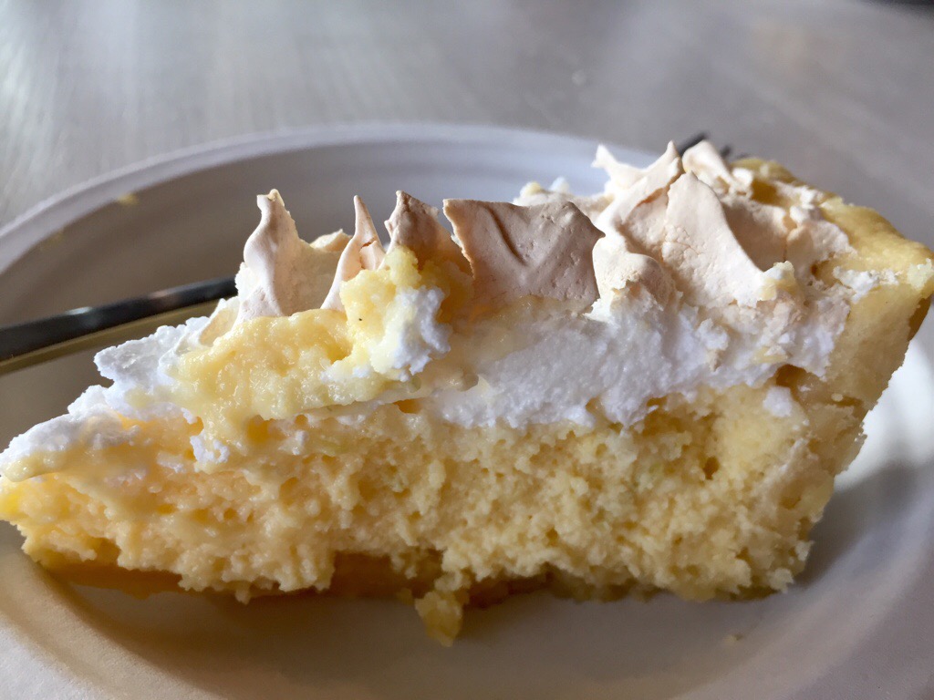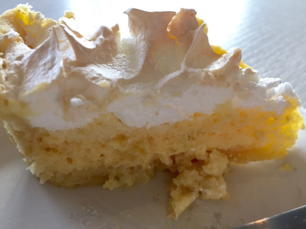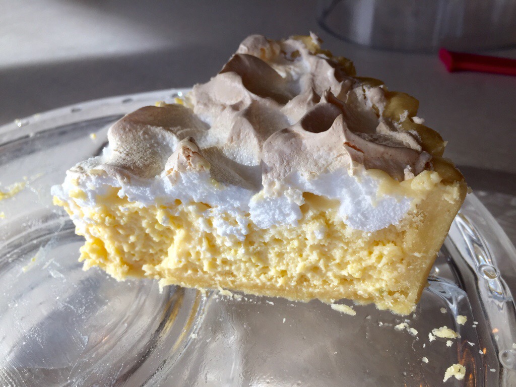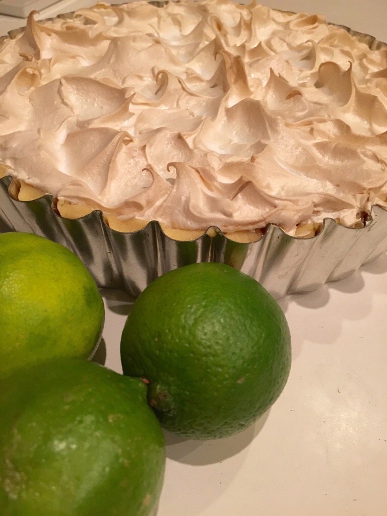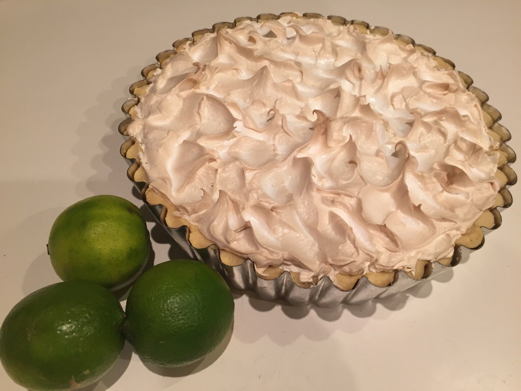 I’ve made this pie many times, and over the years have adapted the recipe a bit, so what’s below isn’t exactly the original recipe, but it’s pretty darn good! It has a shortcrust shell with a pale yellow, fluffy, sweet and limey filling, and is topped with meringue.