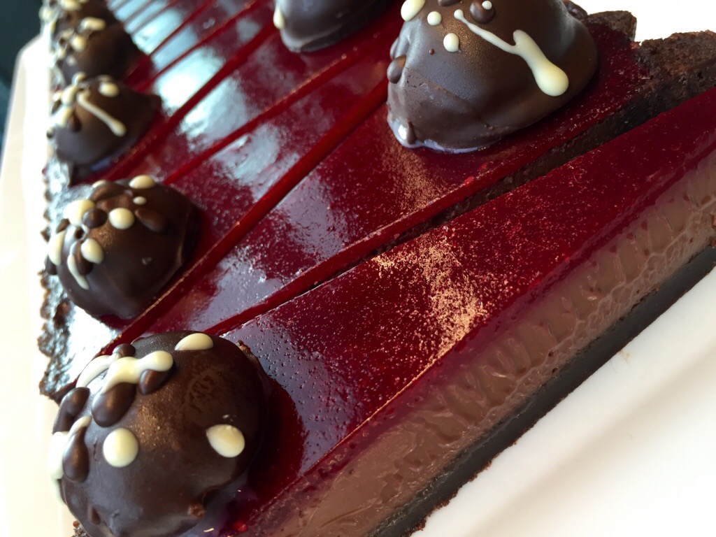 So we have the chocolate tart – which by the way you can just make on its own, it’s completely wonderful – glazed with a thin layer of real raspberry jelly, and decorated with little chocolate coated bombs of soft whipped cream. How completely adorable. Not to mention to-die-for delicious.