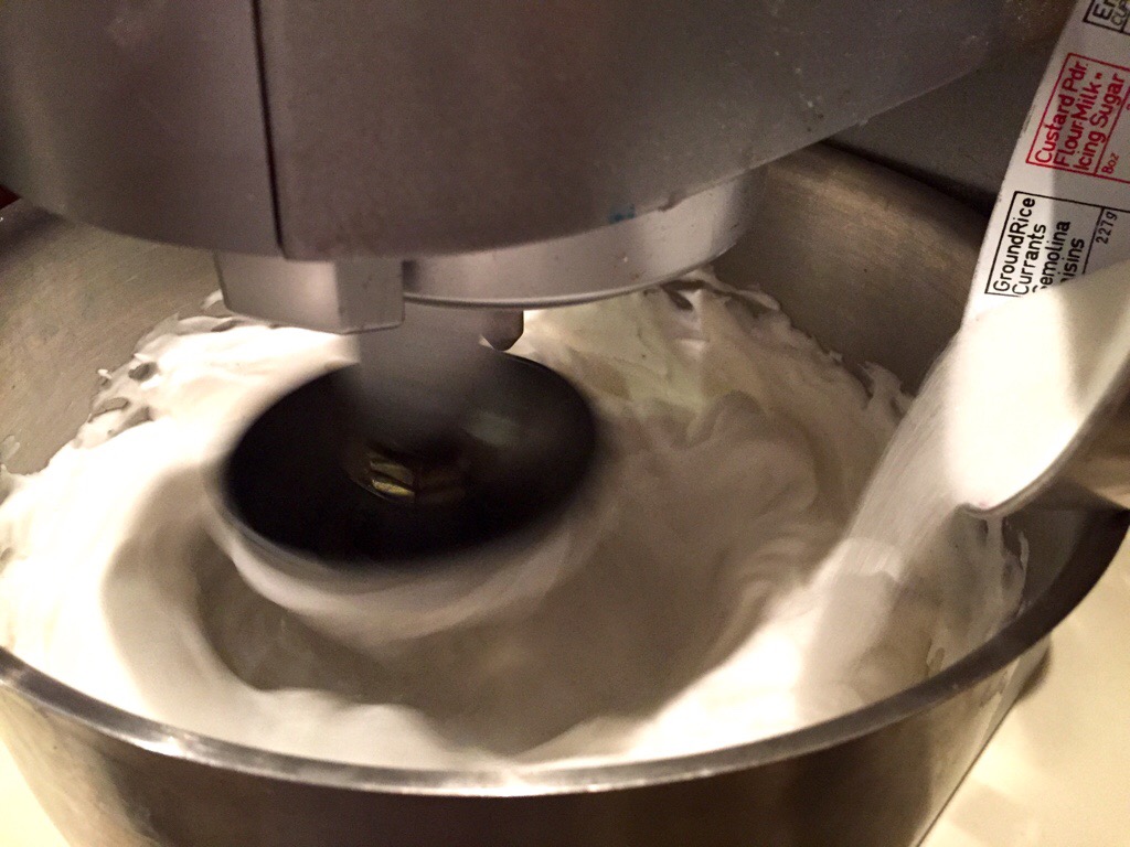 Beat the egg whites, cream of tartar, salt and vanilla bean in a large bowl stand mixer until soft peaks form. Tip in the caster sugar, a little at a time, while the mixer is running and beat until firm glossy peaks form and the sugar is all dissolved (test this by rubbing a little meringue between your fingers, there shouldn’t be any sugar crystals apparent).