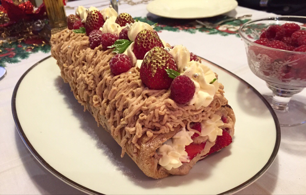 One of the amazing desserts I assayed for the first time this past Christmas was a Mont Blanc Roulade.
