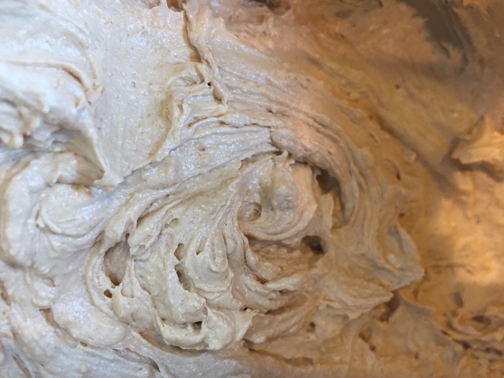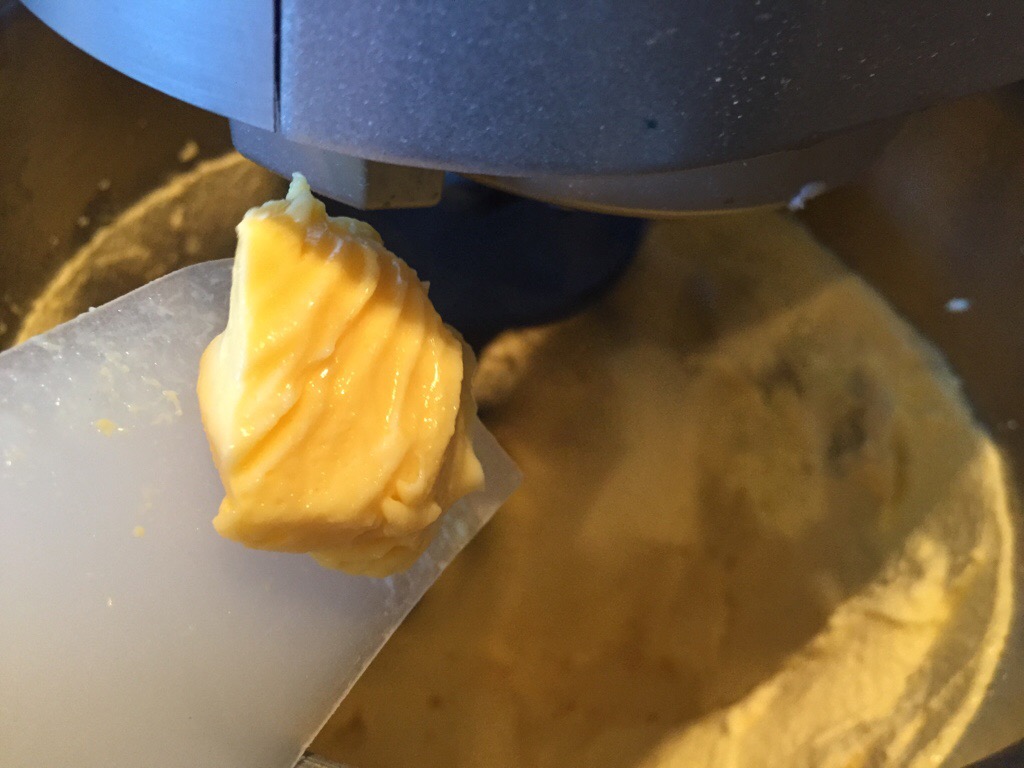 I mentioned “cheats” mousseline a moment ago. Mousseline is actually crème patissiere whipped with a hefty amount of butter. It is touted as the lightest of the buttercreams – it’s almost mousse-like (hence its name I guess!), and it is used as a filling in some classic cakes including the Frasier. It’s divine, but it takes time because you need to make real crème patissiere and let it cool (and woe betide ye if it didn’t cool enough! Butter soup!). You will also recall that I have a deep and abiding affection for butter roux frosting, which is a milk and flour roux added to whipped butter and granulated sugar. My Cheat’s Mousseline falls halfway between the two: it has the custard of Mousseline but otherwise the method of butter roux frosting. And it’s doubly cheaty because you can use custard powder to make the custard (in the microwave even). It’s light, not too sweet, and has a wonderful extra depth of taste compared to regular frostings.