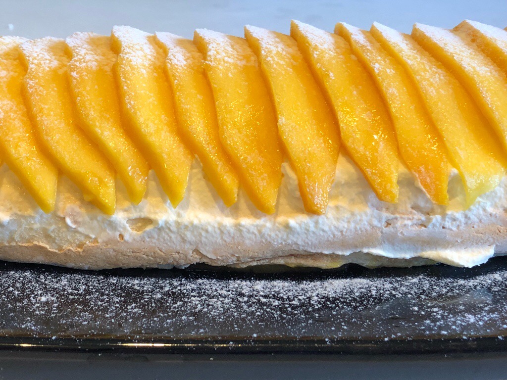 Mango Passionfruit Yuzu Pavlova Roll